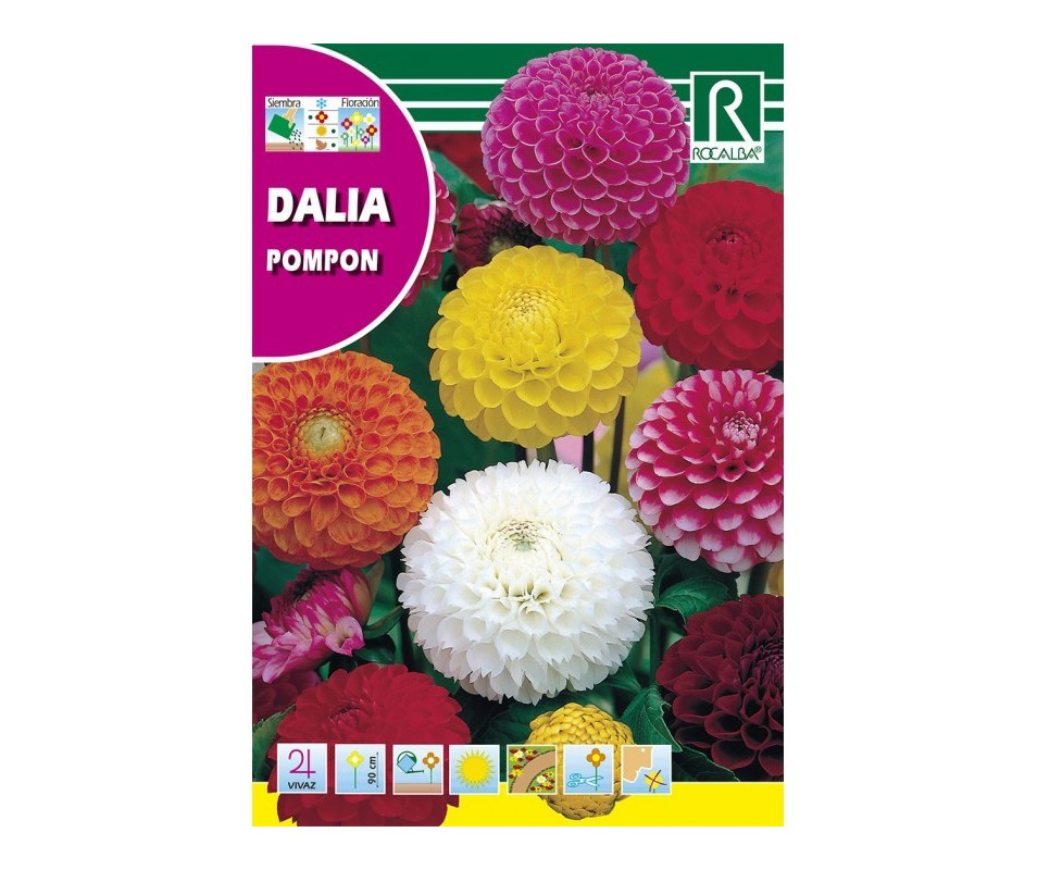Planta herbácea perenne de hojas compuestas y flor en cabezuela grande en forma de pompón, de colores variados.