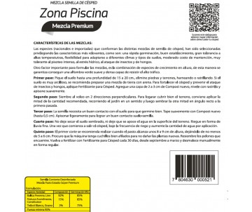 Composición mezcla: Lolium Perenne Linn 82%, Festuca Arundinacea Constitution 15%, Trébol Blanco Enano 3%.