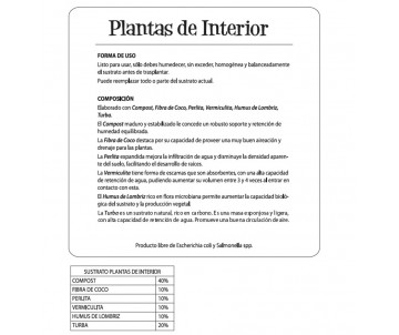 Es la elección ideal para quienes desean cultivar plantas saludables y vibrantes en espacios cerrados. Este sustrato ha sido formulado específicamente para maximizar la aireación y drenaje, y al mismo tiempo asegurando que tus plantas reciban la humedad y nutrientes necesarios para su crecimiento.